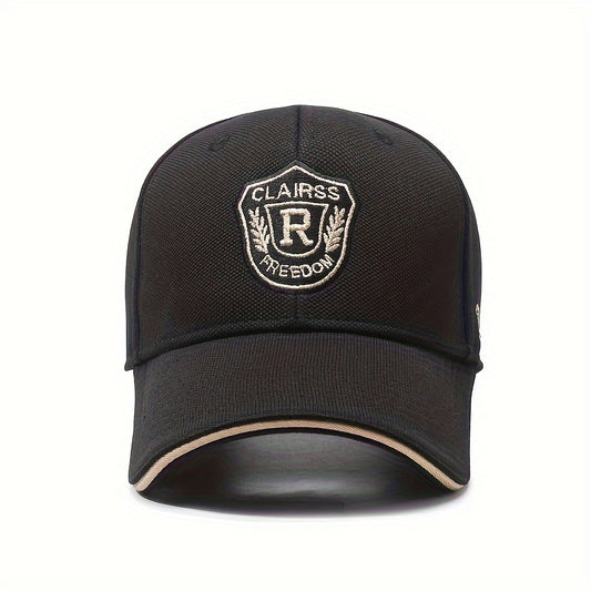 1pc CLAIRS R Embroidered Baseball Cap - Adjustable Lightweight Curved Brim Hat for Men & Women, Black with Golden Logo, Casual Outdoor Wear, Outdoor Headwear|Stylish Baseball Cap|Lightweight Ha