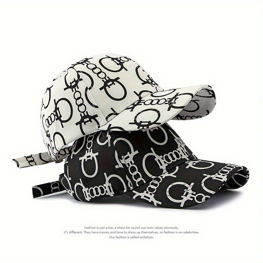1pc Men's Casual Geometric-Pattern Baseball Cap with Square Silvery Buckle, 100% Polyester Lightweight Adjustable Sun Protection Hat for Spring/Autumn Travel and Beach Parties