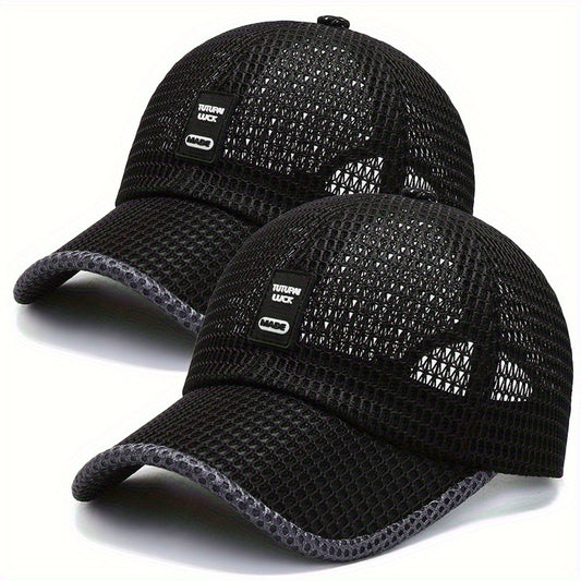 2pcs Unisex Quick-Dry Breathable Mesh Baseball Caps - Adjustable Lightweight Summer Sun Hats with Geometric Textured Design for Outdoor Sports, Football Games & Casual Streetwear (Black & Gray), Game Day Accessories, Durable