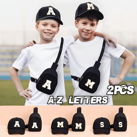 2pcs Youngsters' 26 Letter Print Truck Hat and Chest Bag Set, Fashionable Casual Sun Hat with Portable Storage Wallet, Suitable for Boys Girls Spring Summer Daily Outings, Perfect Back-to-School Season Gift