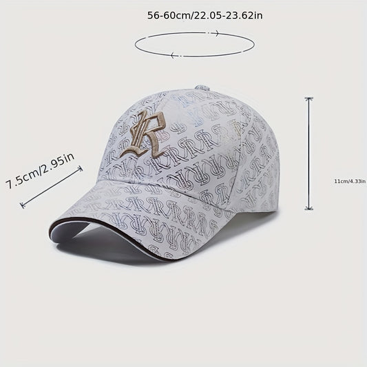 Unisex Baseball Cap with R Letter, Versatile Design, Wide-Brimmed Sun Hat with Badge for Large Head Sizes.