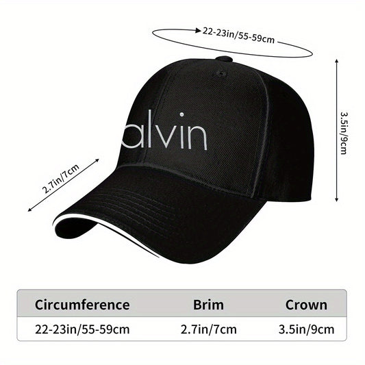 Men's Sporty Breathable Polyester Baseball Cap with Modern Metallic Calvin Text Pattern - Black & White Contrast Design for Fitness, Running, Couples Matching Hats, Fitness Accessory, Sleek Sporty Style, Comfortable Headwear