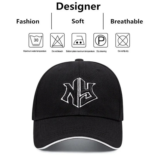 NY Embroidered Baseball Cap - Stylish Black Polyester Hat with Golden "NY" Design, Perfect for Spring & Fall Sports and Casual Wear, Casual Headwear | Embroidered Cap | Polyester Cap
