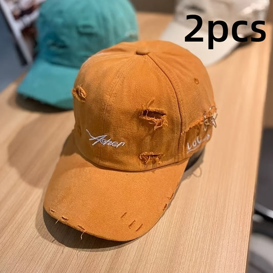 1/2pcs Vintage Ripped Baseball Cap Washed Distressed Dad Hats Letter Embroidery Hip Hop Sun Hats for Women & Men