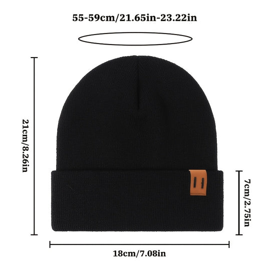 2pcs Fashion Faux Leather Label Knit Hat Set for Autumn and Winter, Outdoor Warm Ear Protection Knitted Cap Wholesale Lightweight Beanie