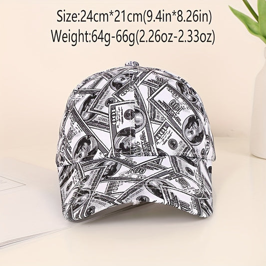 Funky Money Print Baseball Cap 100% Polyester Lightweight Adjustable Hip-Hop Hat Unisex for Music Festivals