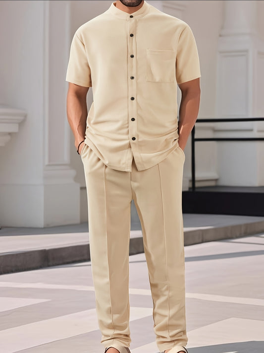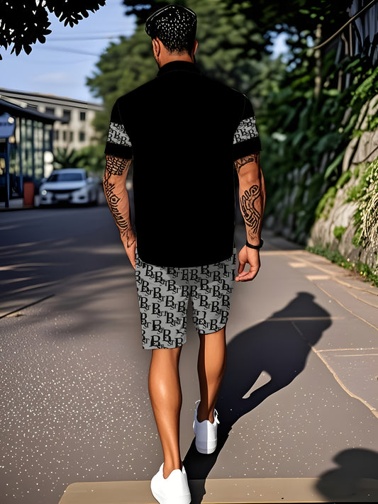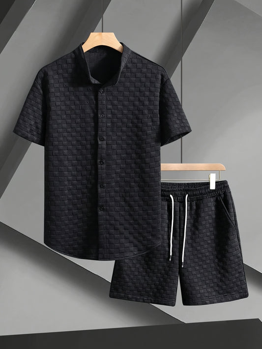 Men's Shirt and Shorts Set Solid Color Knit Casual Comfort High-Quality Short Two-Piece