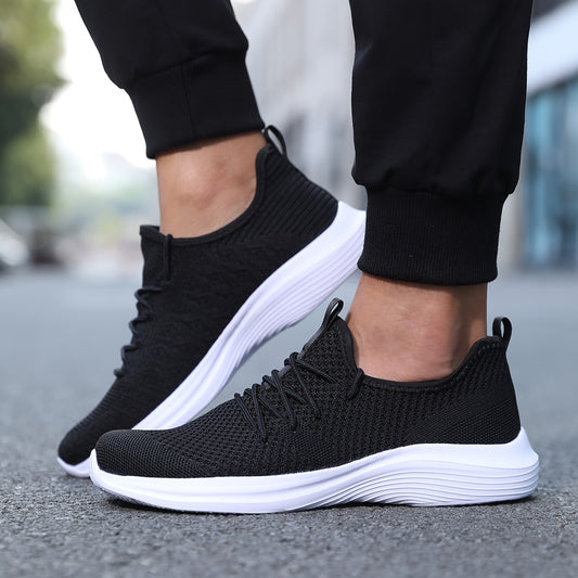 Men's Low Top Fashion Sneakers Breathable Mesh Casual Shoes with EVA Insole and Rubber Sole, Solid Color Lace-Up Sports Shoes for Men
