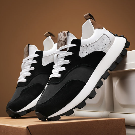 1 Pair of Men's Casual Sneakers, Comfortable Slip-Resistant, Black Beige Low-Top Shoes for Casual Attire, Trendy Street Style with Fabric Lining and Durable PVC Sole