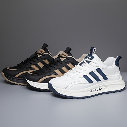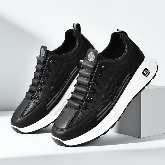 Men's Breathable Casual Sneakers - Comfortable, Versatile Stylish Shoes for Running, Sports Casual Attire, Black with White Accents, PU Upper PVC Sole, Round Toe, Lace-Up Design, All-Season Use