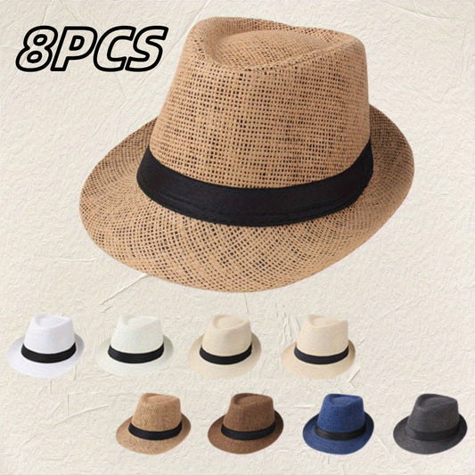 8pcs Set Hat Unisex Straw Sunshade Breathable Sun Hat Bucket Hat Casual Top Hat Summer Hat