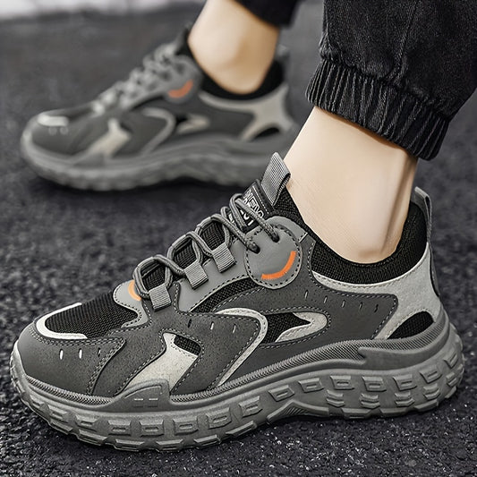 Men's Trendy Chunky Sneakers - Breathable Mesh PU Upper, Durable PVC Sole, Lace-Up Casual Sneakers in Gray, Black Orange, All-Season Comfort for Casual Attire