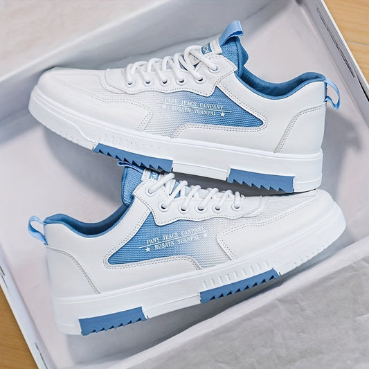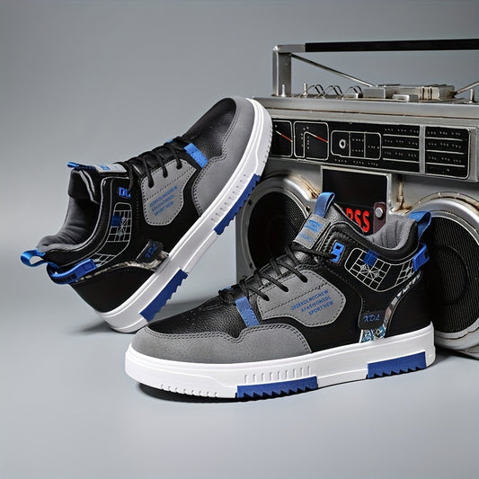 Men's Skate Shoes with Good Grip Breathable Design - PU Upper, Cushioned PVC Sole, Black/Blue Letter Pattern Lace-Up Sneakers for All-Season Casual Sports Wear, Allseason Shoes Modern Casual Shoes Comfortable Wear