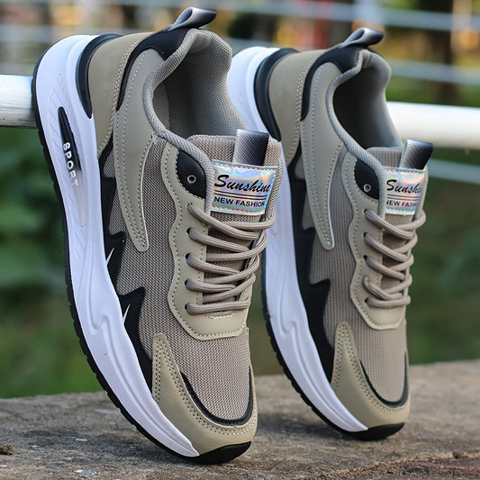 Men's Fashion Sports Sneakers, Breathable Mesh Fabric Upper, Comfortable Lace-Up Running Shoes with PVC Sole and Cloth Insole for All Seasons