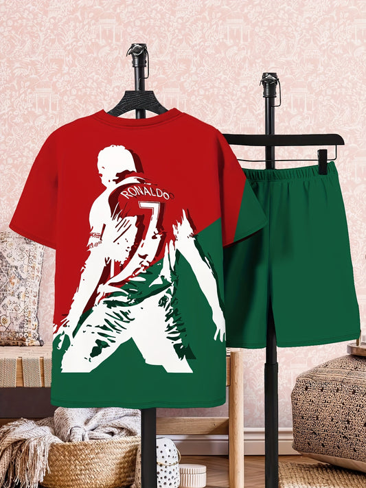 New Stylish Football Number 7 Character Print 3D Printed Top and Shorts Set for Girls and Boys, Kids' Short Sleeve Outfit, Perfect for Outdoor