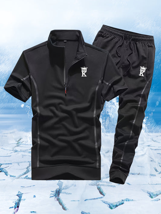 Men's Casual Fashion Short-Sleeve Zip-Up Suit, Suitable for All Seasons