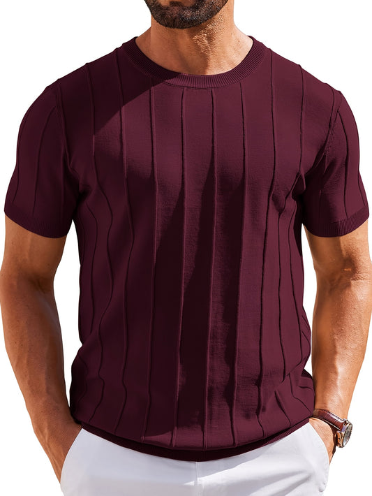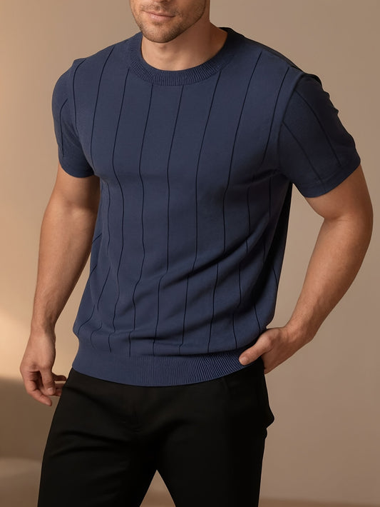 Men'S Slim-Fit Vertical Stripe Crew Neck Knit Short Sleeve T-Shirt | Breathable, Skin-Friendly Fabric, Ideal for Casual and Business Occasions, Versatile Layering Piece