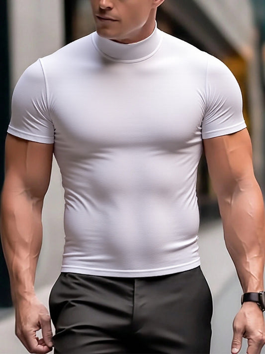 Elastic Men'S Half High Neck Comfortable Casual Simple Short Sleeve T-Shirt - Basic Short Sleeve Top for Men