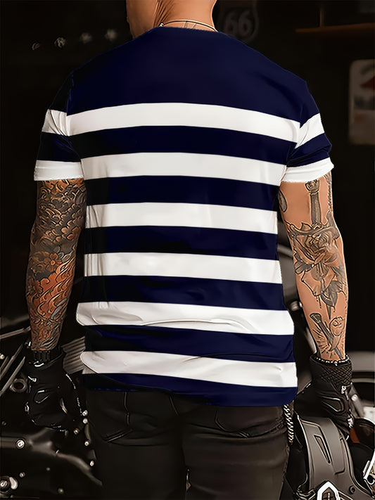 Men'S Casual Striped Short Sleeve T-Shirt - Navy Blue White Vertical Stripes, Crew Neck, Regular Fit, Lightweight Polyester Fabric, Perfect for Casual Attire, Everyday Tshirt Classic Striped Tee Lightweight Shirt