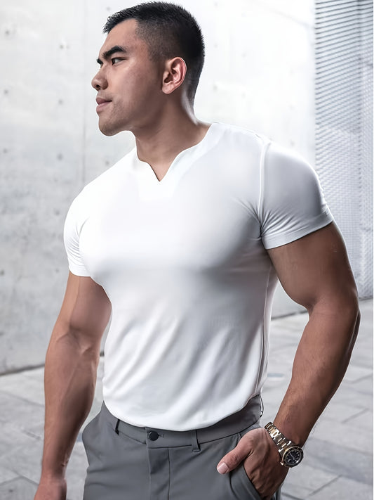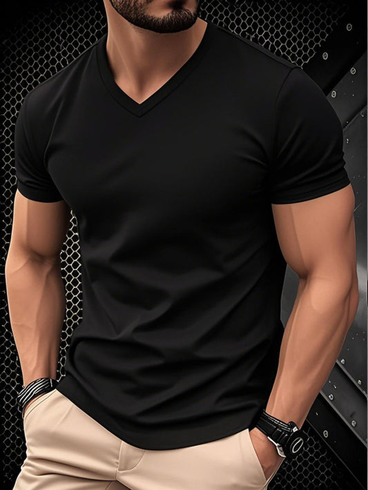1pc Men's Light Blue Solid Color V-Neck Casual T-Shirt - Breathable Regular Fit Short Sleeve Tee for Spring Summer, Gym, Office Casual Attire