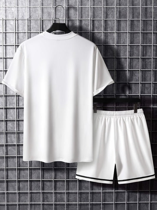 Men's Sports Round Neck Short Sleeve Shirt and Shorts Set, 3D Print Casual Summer Outfit