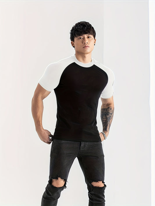 1-Pack Shule Water OBM Men's Quick-Dry Sweat Absorbent Muscle Fitness T-Shirt - Slim Fit Stretch Breathable Color Block Design for Gym, Outdoor Sports Casual Summer Wear, Gym Accessories