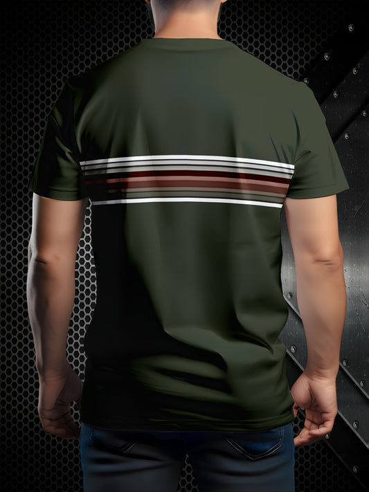 Men'S Casual Crew Neck T-Shirt - 100% Polyester Knit Fabric, Slight Stretch, Solid Color, Regular Fit, 3D Stripe Design