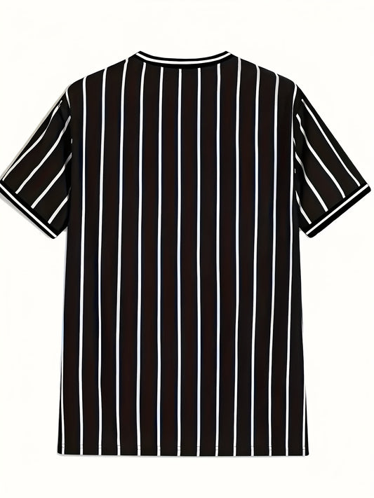 Men'S Casual 3DT-Shirt - Black Red Striped Design, Short Sleeve, Round Neck, Regular Fit, All-Season Comfort, Comfortable Clothing Stylish Striped Shirt Smooth Texture Fabric