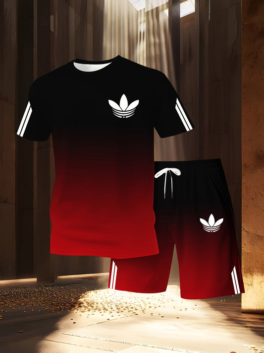 ADIDA Letter Set Short Sleeve + Shorts Two-Piece Men's Fashion Casual Round Neck T-Shirt Outfit, European Style Trendy Short Sleeve Set