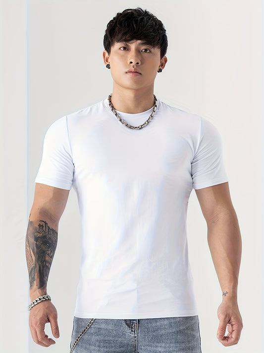 Men's Casual Breathable T-Shirt - Moisture-Wicking 100% Polyester, Regular Fit Round Neck, Machine Washable Solid Color Tee for Outdoor Casual Attire, Active Lifestyle, Minimalist Design, Durable Construction, Basic Top, Ac