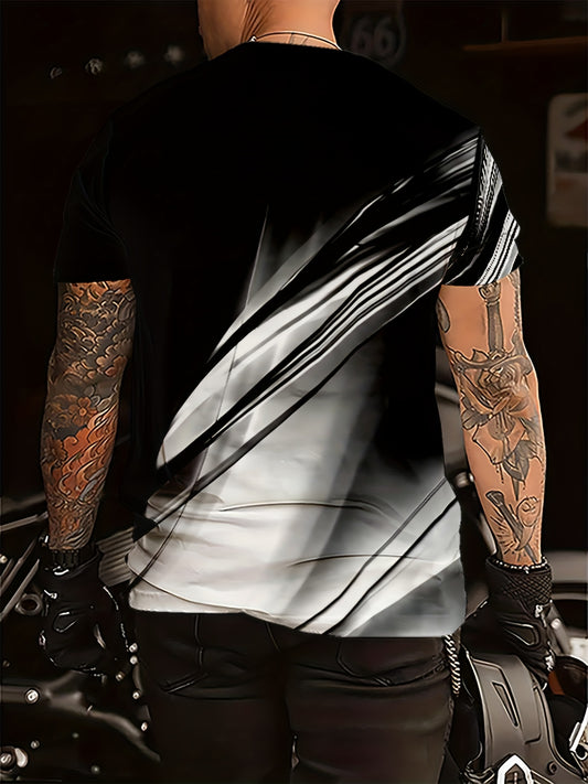 Men'S 3D Printed Graphic T-Shirt - Black, Blue White, Short Sleeve, Round Neck, Casual Fit, All-Season Wear, Casual Attire Modern Graphic Tee Comfortable Fit, PLUS SIZE