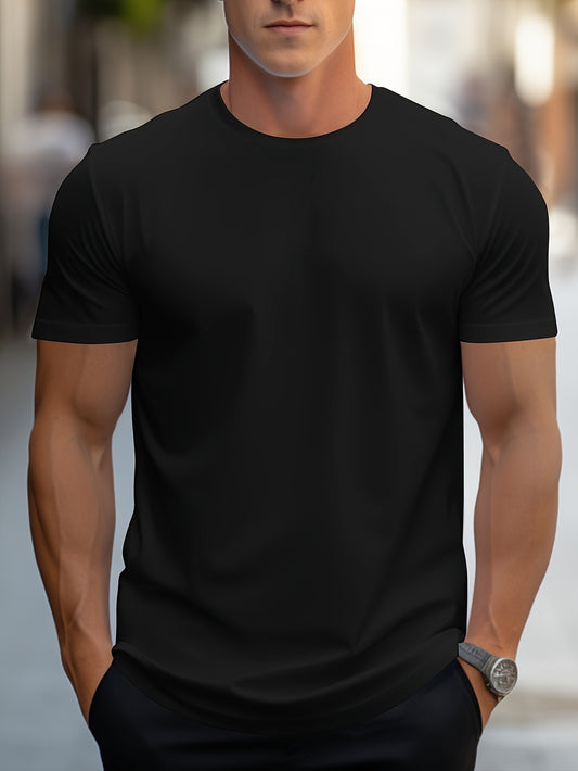 1pc Men's Spring Summer Casual Short Sleeve T-Shirt - Solid Black, Regular Fit Round Neck, Breathable Fabric for Gym, Outdoor Casual Attire, Gym Shirts, Durable Casualwear, Smooth Texture