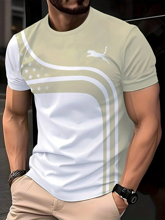 Men'S 3D Digital Print Short-Sleeve T-Shirt, Breathable Round-Neck Top for All Seasons, Non-Transparent, Stylish And Versatile, Comfortable And Lightweight.