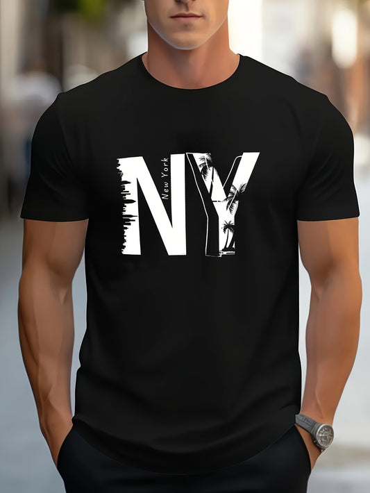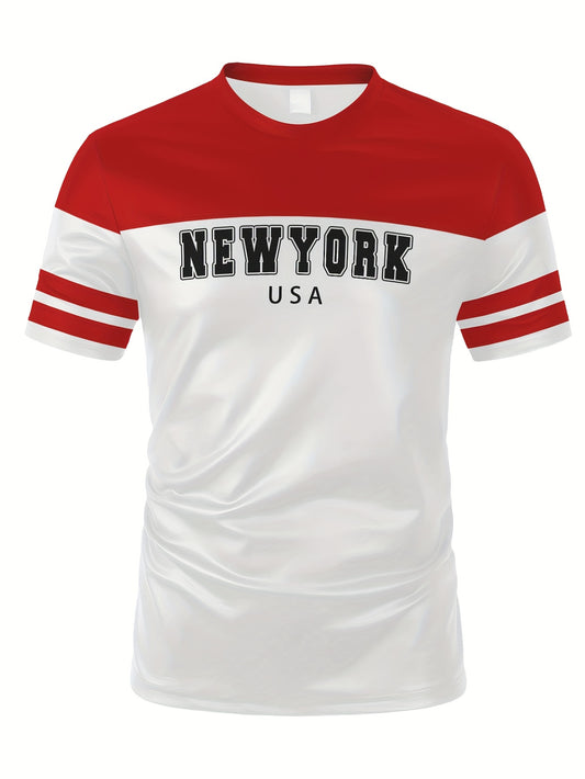 Men's New York USA Graphic T-Shirt - Stretchy, Breathable Polyester-Spandex Blend, Casual Sporty Short Sleeve Tee for Fitness, Running, Yoga, Gym Workouts, Gym Shirts