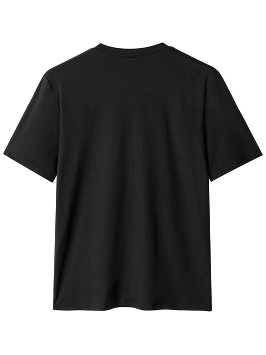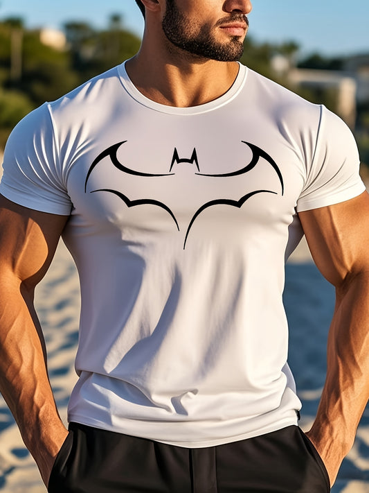 Minimalist High-End Bat Pattern Print Short-Sleeve Summer Fashion Casual Black And White Textured Men'S T-Shirt.