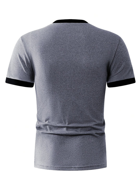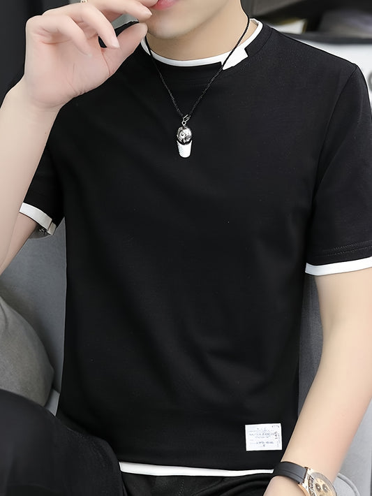 Men's Slim Fit Knit T-Shirt - Contrast Color Design, Breathable Stretch Fabric, Machine Washable Summer Casual Outdoor Sportswear for Men Teens, T-shirt Stylish, Versatile Top, Modern Fashion, Durable Construction, Short Sl