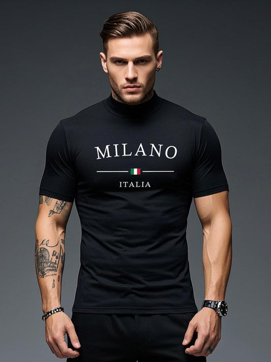 Men'S Milano Italia Print Casual T-Shirt - Half Neck, Short Sleeve, Lightweight Fabric, Spring/Summer Collection, Black with White Logo, Soft Comfortable Fit for Casual Attir