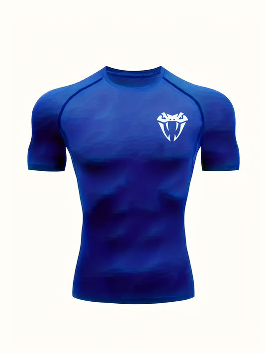 Men'S Quick-Dry Athletic Compression T-Shirt with Serpent Head Logo - Short Sleeve, High Stretch, Breathable Fabric for Running Workout, Blue
