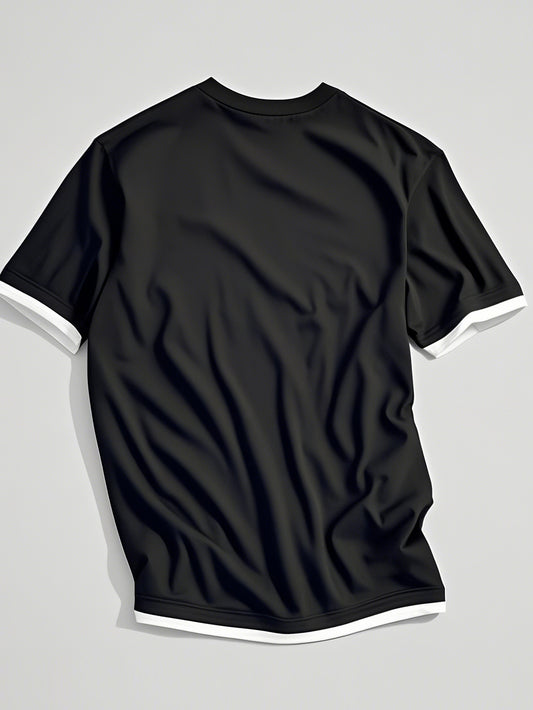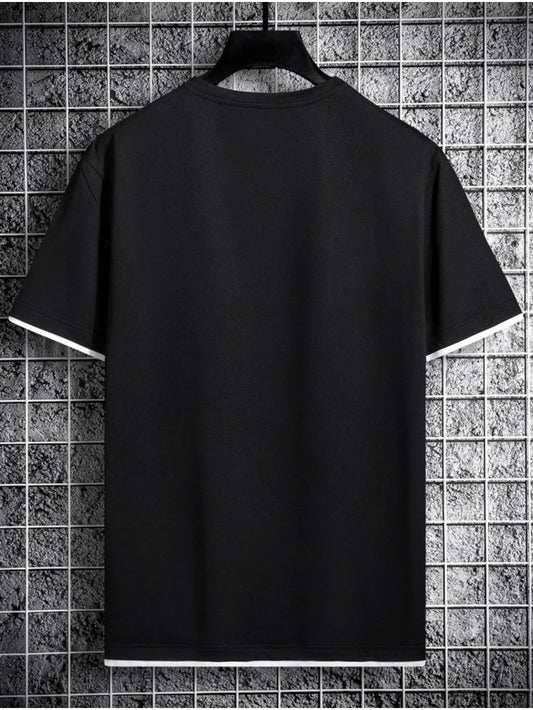 1pc of Men's black and white color-block round neck casual short-sleeve T-shirt