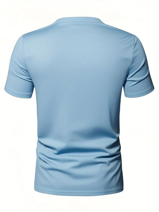 Men's Summer Classic V-Neck Casual T-Shirt - Breathable Regular Fit Short Sleeve Tee, Solid Light Blue for Gym, Outdoor Casual Attire