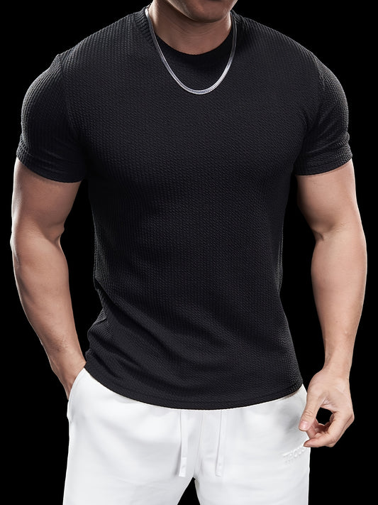 Men's Slim Fit Stretch Crew Neck Short Sleeve T-Shirt - Solid Color Black, Summer Casual Sporty Tee for Casual Attire