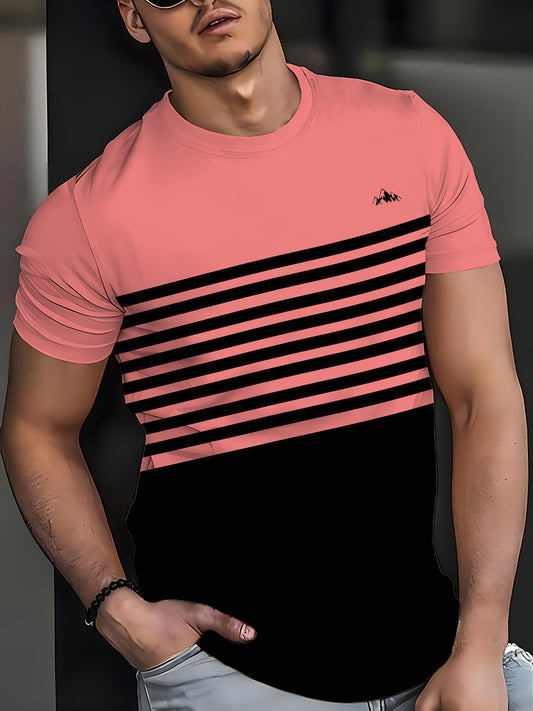 Stylish Men'S Top, a Short-Sleeve T-Shirt with Vibrant 3D Print Striped Patchwork And a Round Neck, Perfect for Summer Street Fashion And Casual Sports.