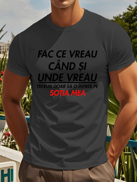 Men's Romanian Quote Short Sleeve T-Shirt - "Face Ce Vreau Cand Si Under Breath" Print, Lightweight Polyester, Casual Summer Top, Round Neck, Machine Washable, Machine Washable Tee Bold Text Tee Lightweight Material