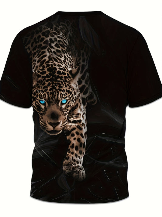 Men's Black T-Shirt with Bold Leopard Face Graphic - Short Sleeve Round Neck Casual Shirt, Lightweight Summer Top for Gym, Everyday Formal Outfits - Machine Washable Bold Animal Print Tee, Comfortable Fit