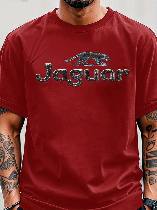 Men'S Jaguar Print Y2K Style T-Shirt - Red, Breathable Comfortable Short Sleeve Crew Neck Tee for Casual Wear, Outdoor Activities, and Everyday Comfort, Everyday Clothing Y2K Fashion Tee Comfortable Fit