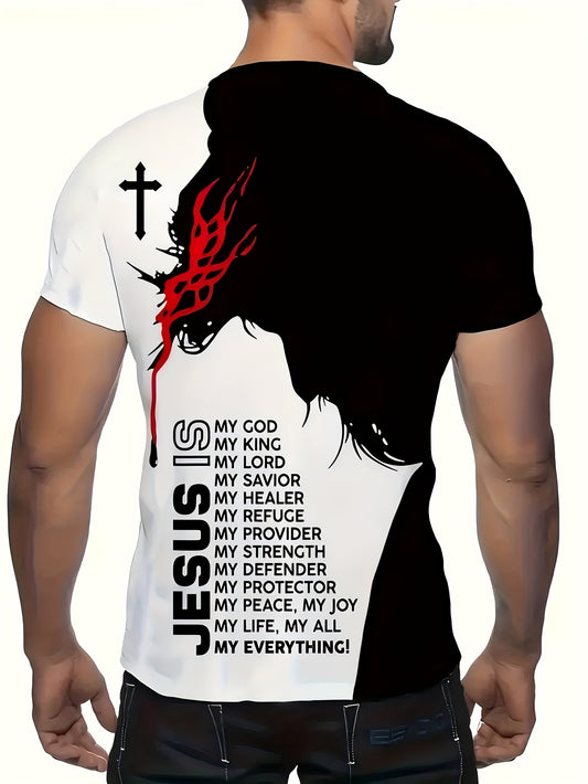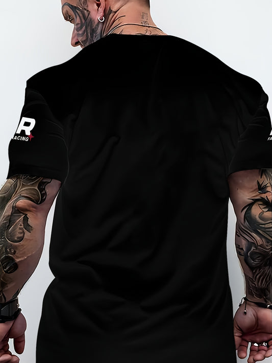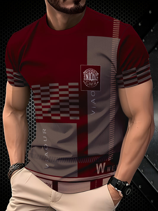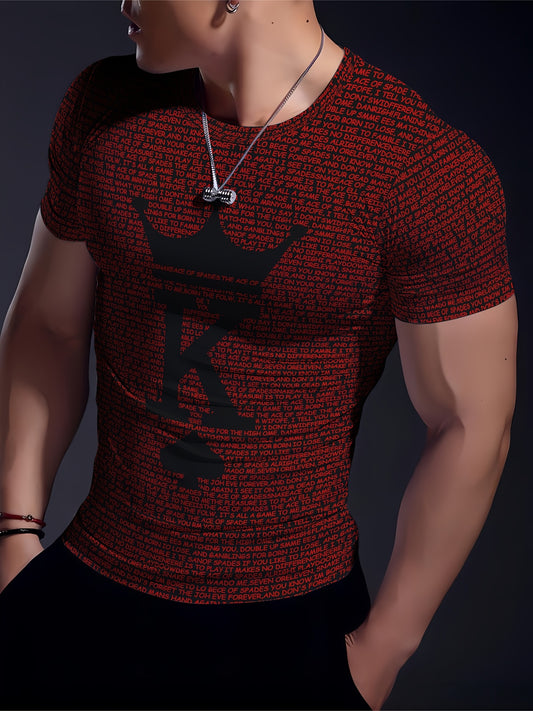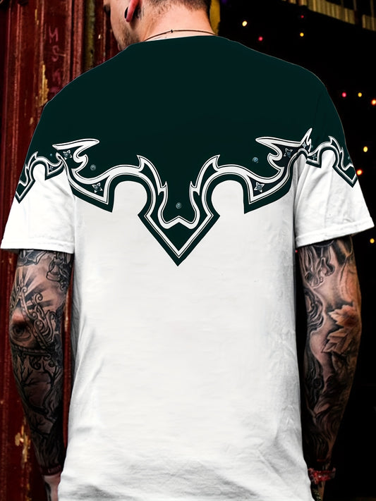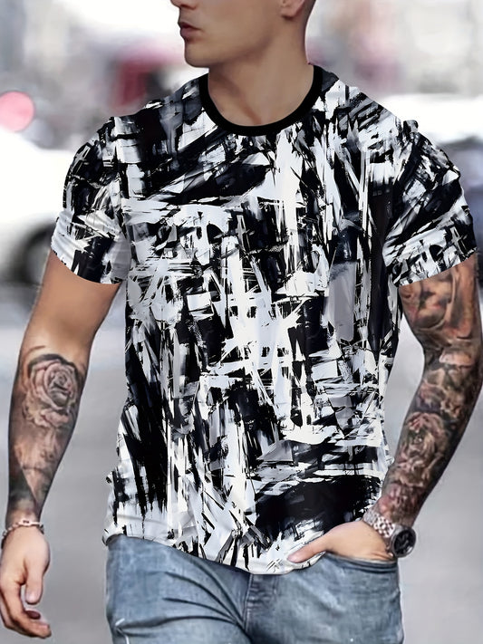 Chic Printed T-shirt, Men's Casual Street Style Stretch Round Neck Tee Shirt For Summer
