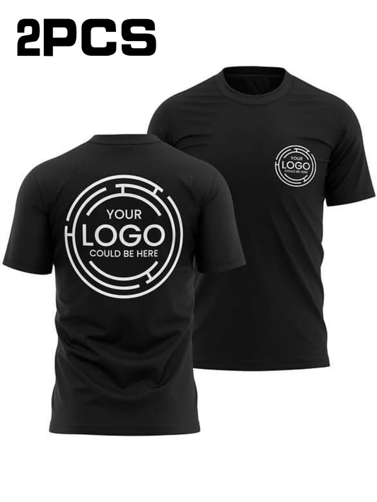 2pcs Men's Quick-Dry T-Shirts - Moisture-Wicking Breathable Gym Shirts with Custom Logo Print, Regular Fit Round Neck for Workout Casual Wear, Workout Shirts, Durable Sportswear