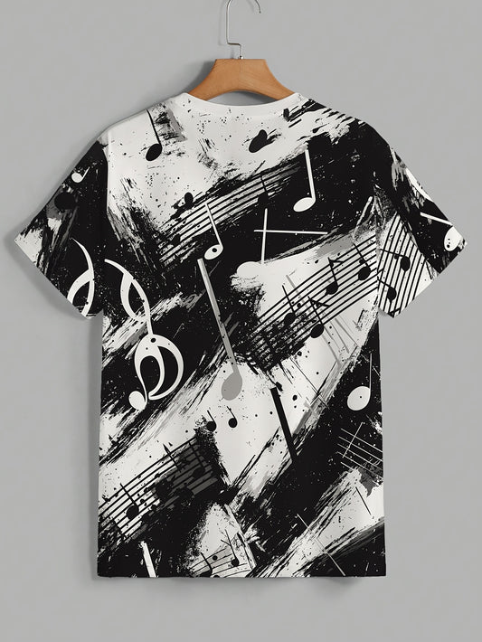 OBM Men's Casual Short Sleeve T-Shirt - Music Note Splatter Print Design, 100% Polyester, Breathable Summer Tee, Regular Fit, Machine Washable, Musicthemed Apparel, Smooth Texture Fabric