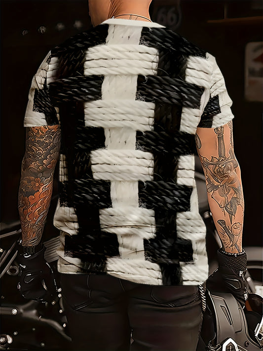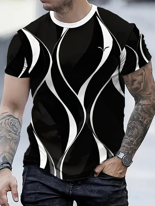 Men's Lightweight Summer T-Shirt - Black/White Print Tee with Modern Angular Lines - Breathable Fabric for Everyday Formal Outfits - Casual Crewneck Shirt for Hot Weather, Summer T Shirts, Stylish Streetwear, Nontransparent