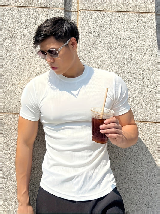 1-Pack Men's Stylish Polyester T-Shirt - Round Neck, Lightweight, Breathable, Machine Washable, Solid Color, All-Season Casual Wear for Men